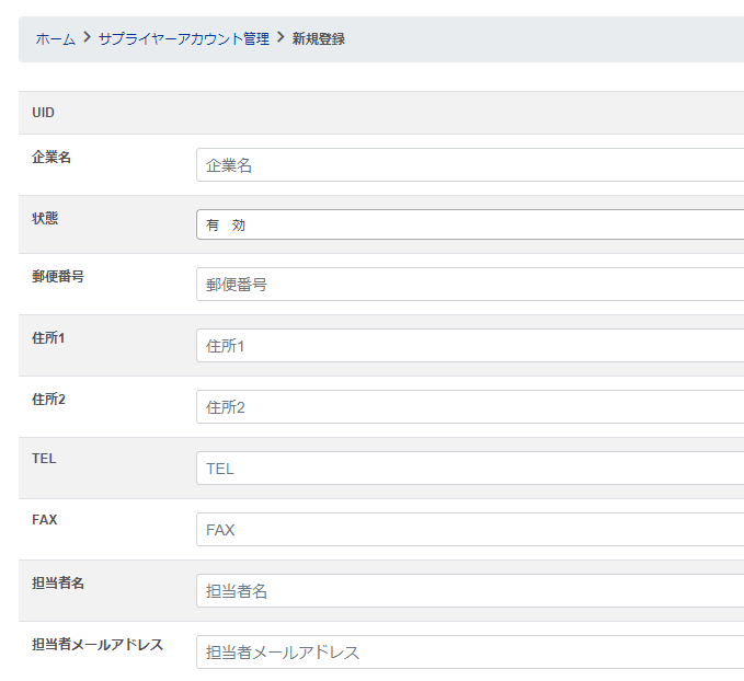 担当者メールアドレス … その業者の代表担当者のメールアドレス入力欄