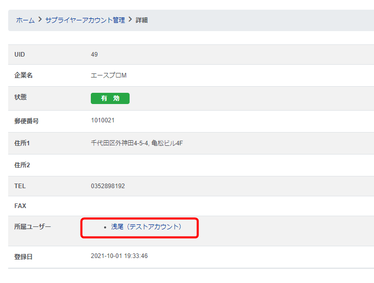 その場合は、サプライヤーアカウントのアカウント管理から企業名をクリックすると確認する事が可能です。