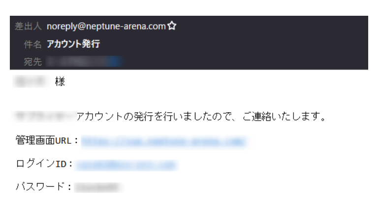 アカウント登録後、入力した担当者メールアドレスにログインURLとID/PASSが届きます。